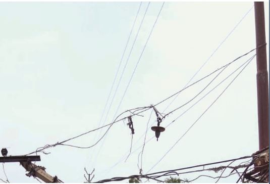 अंधड़ चलने से बिजली तार पर गिरी डाल