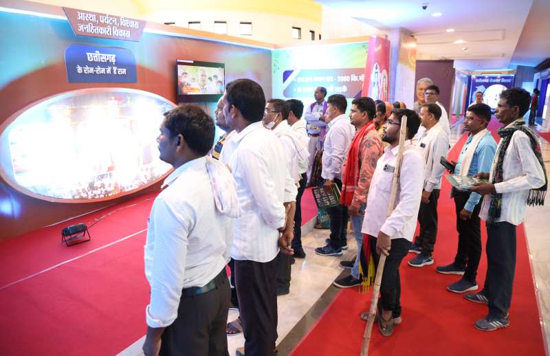 रायपुर : ​ रायपुर के पंडित दीनदयाल उपाध्याय ऑडिटोरियम में  जनसंपर्क विभाग द्वारा  विकास प्रदर्शनी का आयोजन पूर्व प्रधानमंत्री श्री राजीव गांधी की पुण्यतिथि 21 मई से किया जा रहा है। प्रदर्शनी में राज्य सरकार की महत्वकांक्षी योजनाओं की जानकारी आकर्षक फोटो और वीडियो के माध्यम से दी जा रही है। साथ ही जनसंपर्क विभाग द्वारा प्रकाशित योजनाओं की विस्तृत जानकारी के फोल्डर एवं पुस्तिका का निःशुल्क वितरण किया जा रहा है। विभिन्न जिलों के जनप्रतिनिधि एवं ग्रामीण प्रतिदिन प्रदर्शनी देखने पहुंच रहे हैं।