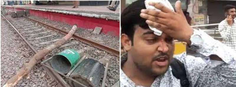 रेलवे ट्रैक पर जलते टायर फेंके, तोड़फोड़