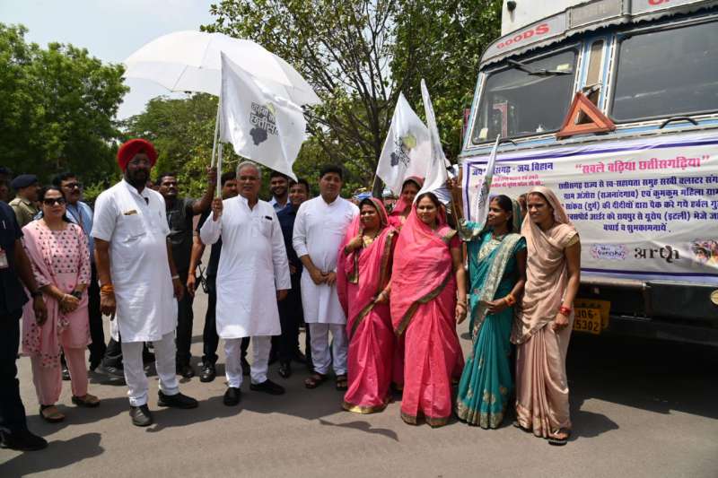 रायपुर : एक्सपोर्ट किए जा रहे 23 हजार किलो हर्बल गुलाल की कीमत 41.95 लाख रूपएमुख्यमंत्री श्री भूपेश बघेल आज रायपुर स्थित अपने निवास कार्यालय में आयोजित कार्यक्रम में छत्तीसगढ़ राज्य में तैयार हर्बल गुलाल से भरे ट्रक को यूरोप एक्सपोर्ट करने के लिए झंडी दिखाकर रवाना किया। यह हर्बल गुलाल स्व-सहायता समूह के सखी क्लस्टर संगठन अंजोरा राजनांदगांव एवं कुमकुम महिला ग्राम संगठन सांकरा दुर्ग की महिलाओं ने श्री गणेशा ग्लोबल गुलाल प्राइवेट लिमिटेड के मार्गदर्शन में अपनी लगन और मेहनत से तैयार किया है। यूरोप एक्सपोर्ट किए जा रहे 23 हजार 279 किलो हर्बल गुलाल का मूल्य 41 लाख 95 हजार 302 रूपए है। छत्तीसगढ़ के हर्बल गुलाल से भरे ट्रक को यूरोप रवाना करने झंडी दिखाने के मौके पर मुख्यमंत्री के सलाहकार श्री प्रदीप शर्मा, विधायक व छत्तीसगढ़ गृह निर्माण मंडल के अध्यक्ष श्री कुलदीप जुनेजा एवं नगर निगम रायपुर के महापौर श्री एजाज ढेबर, श्री गणेशा ग्लोबल गुलाल प्राइवेट लिमिटेड के डायरेक्टर श्री अनुज गोयल एवं महिला स्व-सहायता समूह के पदाधिकारीगण मौजूद थे।