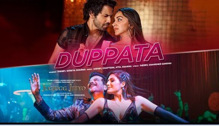 बॉलीवुड अभिनेता वरुण धवन और कियारा आडवाणी की फैमिली ड्रामा फिल्म जुग जुग जियो सिनेमाघरों में रिलीज होने के लिए पूरी तरह से तैयार है। फिल्म की रिलीज डेट पास आते ही निर्माता और फिल्म कलाकार काफी जोर-शोर से जुग जुग जियो का प्रमोशन कर रहे हैं। फिल्म के पहले सॉन्ग नाच पंजबान को मिली शानदार सफलता के बाद अब रविवार को मेकर्स ने फिल्म का तीसरा सॉन्ग दुपट्टा रिलीज कर दिया है।2 मिनट 41 सेकेंड के इस पार्टी सॉन्ग में वरुण धवन और कियारा आडवाणी डांस फ्लोर पर अपने शानदार डांस से समा बांधते हुए दिख रहे हैं, जबकि मनीष पॉल और अनिल कपूर भी उनका खूब साथ दे रहे हैं। सॉन्ग दुपट्टा तेरा सतरंग दा को टी-सीरीज के आधिकारिक यूट्यूब चैनल पर रिलीज किया गया है। सुरजीत बिंद्राखिया द्वारा लिखे इस गाने को शमशेर संधू और श्रेया घोषाल ने अपने बेहतरीन आवाज दी है।
