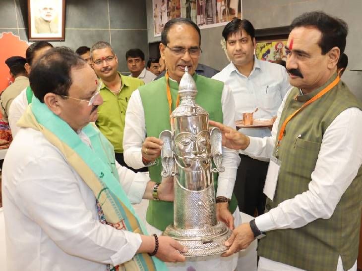 जेपी नड्डा कार्यक्रम बदलकर अचानक गृहमंत्री के घर पहुंचे, मिश्रा ने खूब खातिरदारी की