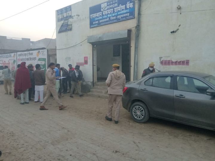 हनुमानगढ़ जिले के जंडावाली गांव स्थित मरुधरा ग्रामीण बैंक में लूट का मामला सामने आया है। इसमें कार सवार बदमाश करीब 12 लाख 40 हजार रुपए बैंक से लूट ले गए। वारदात की जानकारी मिलने पर पुलिस मौके पर पहुंची। इसके बाद शहर में नाकाबंदी कर बदमाशों की तलाश की जा रही है। पुलिस बैंक में लगे सीसीटीवी फुटेज भी खंगालने मे लगी है।