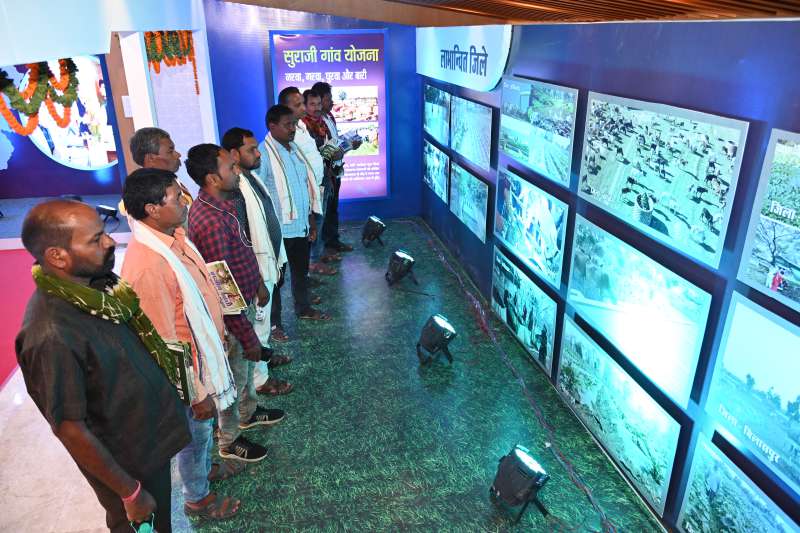रायपुर : रायपुर के साइंस कॉलेज परिसर स्थित दीनदयाल उपाध्याय आडीटोरियम में राज्य सरकार के साढ़े तीन साल की उपलब्धियों पर आधारित विकास प्रदर्शनी के तीसरे दिन महासमुन्द जिले के पंचायत प्रतिनिधियों ने प्रदर्शनी का अवलोकन किया और इसकी सराहना की। जनसम्पर्क विभाग द्वारा आयोजित प्रदर्शनी मे प्रदेश सरकार की अनेक जनकल्याणकारी योजनाओं और कार्यक्रमों को सुरुचिपूर्ण ढंग से प्रदर्शित किया गया है। फोटो ग्राफ्स के साथ ही वीडियो के माध्यम से भी योजनाओं की विस्तृत जानकारी दी जा रही है।