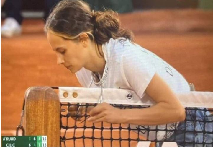 फ्रेंच ओपन में मैच के दौरान महिला ने खुद को नेट से बांधा