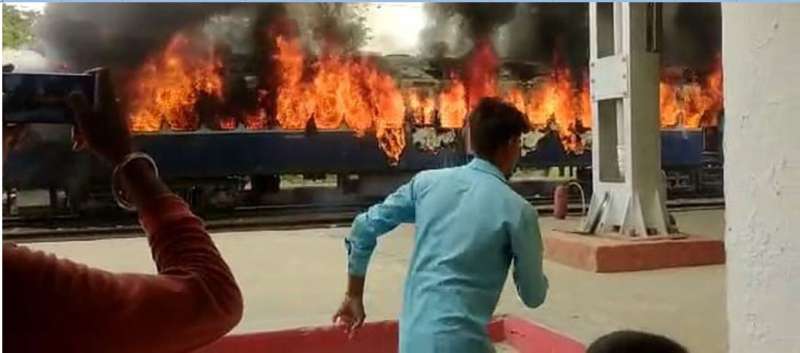 बिहार में बीजेपी दफ्तर और ट्रेनों में लगाई आग