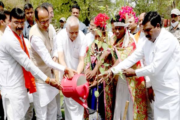 मुख्यमंत्री चौहान ने कुशाभाऊ ठाकरे सभागार परिसर में किया पौध-रोपण