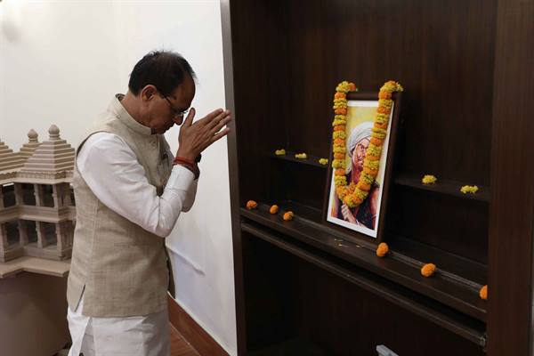 मुख्यमंत्री चौहान ने जननायक भगवान बिरसा मुंडा के चित्र पर माल्यार्पण किया