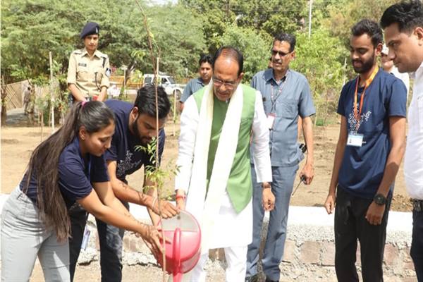 मुख्यमंत्री चौहान ने नीम और पीपल के पौधे रोपे