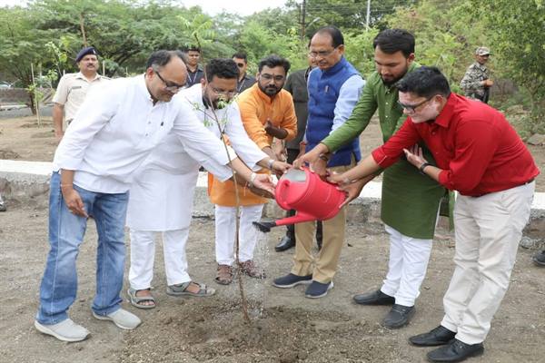 मुख्यमंत्री चौहान ने नीम और बरगद के पौधे रोपे