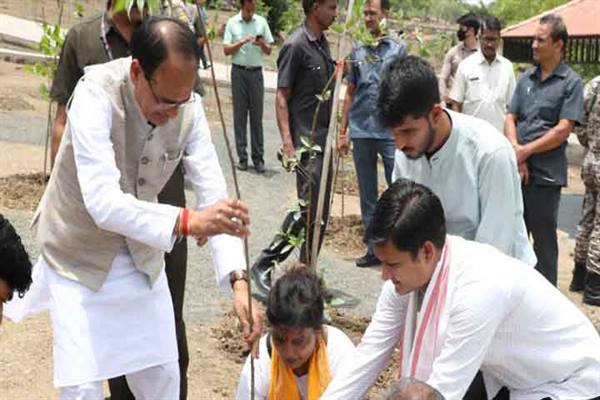 मुख्यमंत्री चौहान ने बरगद, नीम और करंज के पौधे लगाए
