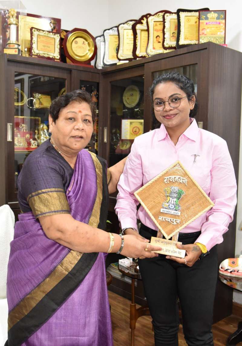 राज्यपाल अनुसुईया उइके से पर्वतारोही नैना धाकड़ ने सौजन्य मुलाकात की