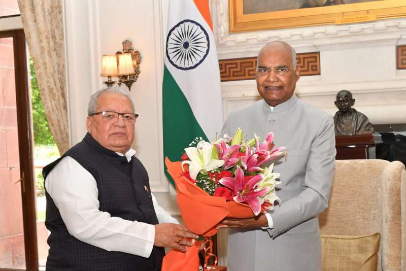 जयपुर। राज्यपाल श्री कलराज मिश्र ने बुधवार को राष्ट्रपति भवन में राष्ट्रपति श्री रामनाथ कोविंद से मुलाकात की। राष्ट्रपति से राज्यपाल श्री मिश्र की यह शिष्टाचार भेंट थी। राज्यपाल श्री मिश्र ने राष्ट्रपति से संवाद के दौरान संवैधानिक जागरूकता के लिए प्रदेश के विश्वविद्यालयों में किए जा रहे कार्यों और राजभवन में बन रहे संविधान पार्क के बारे में उन्हें जानकारी दी। राष्ट्रपति ने राजस्थान में इस पहल को देशभर अनूठा और दूसरे प्रदेशों के लिए भी अनुकरणीय बताया। उन्होंने कहा कि देश में राजस्थान पहला प्रदेश होगा जहां राज्यपाल के स्तर पर यह कार्य किया गया है।