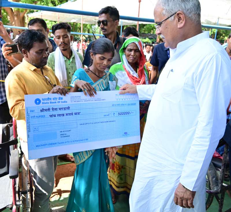 मुख्यमंत्री श्री भूपेश बघेल ने प्रदेशव्यापी भेंट-मुलाकात कार्यक्रम में कुटरू क्षेत्र के अपने प्रवास के दौरान नक्सली हिंसा की पीड़ित रीता मंडावी को 5 लाख रूपए कि आर्थिक सहायता प्रदान की है। मुख्यमंत्री के हाथों सहायता राशि मिलने के बाद रीता मंडावी का कहना है कि वो इन पैसों को अपने बच्चों की शिक्षा और उनके बेहतर भविष्य के लिए खर्च करेगी और अपने जीवन को पहले की तरह ही समाज सेवा और लोगों को जागरूक करने में समर्पित करेगी.