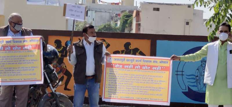 रोड नहीं तो वोट नहीं : अवधपुरी खजूरी कला विकास मंच ने मानव श्रृंखला बनाकर जोरदार नारेबाजी की