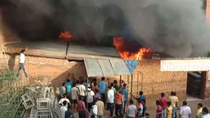शार्ट सर्किट से लगी लहार के टैंट हाउस के गोदाम में आग, आग पर काबू करने का हो रहा है प्रयास