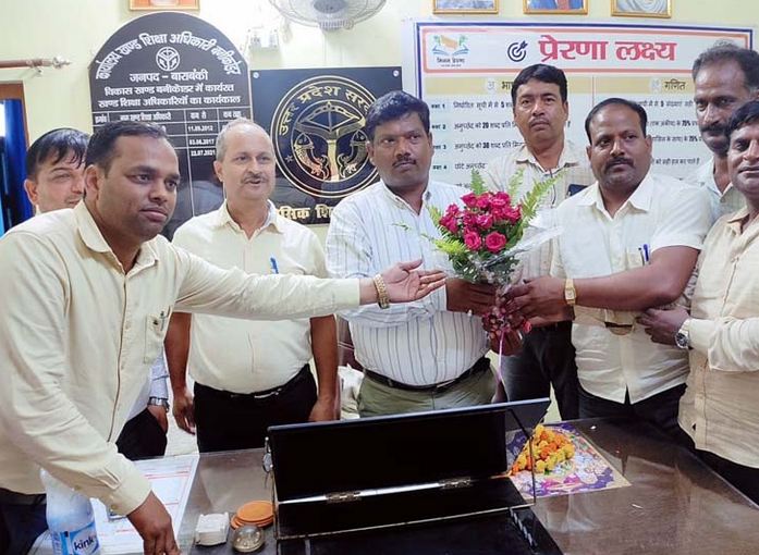 बाराबंकी । विकास खंड बनीकोडर में नवागत खंड शिक्षा अधिकारी चंद्रशेखर यादव ने मां सरस्वती की प्रतिमा पर माल्याणपर्ण कर अपना कार्यभार ग्रहण किया। यादव ने कहा कि दो दिन लगातार सघन स्कूल चलो अभियान चलाया जा रहा है। जिसमें हर अध्यापक दो दो बच्चों का नामांकन कराना होगा जिससे जनपद में बनीकोडर नामांकन प्रथम स्थान पर रहे। शैक्षिक गुणवत्ता से किसी भी प्रकार का समझौता नहीं होगा।अध्यापक समय से विद्यालय पहुँचकर शिक्षण कार्य करें।शिक्षक डायरी भी पूर्ण होनी चाहिए। हाउस होल्ड सर्वे पर भी जोर दिया। इसी कड़ी  में पूर्व खंड शिक्षा अधिकारी सतीश त्रिपाठी ने कहा कि टीम रूप में आप सभी कार्य करें। स्वागत करने वालों में प्राथमिक शिक्षक संघ अध्यक्ष बनीकोडर राजेश कुमार सिंह, सोमप्रकाश मिश्र ,नोडल संकुल सुधीर तिवारी, ए.आर.पी. अरुण कुमार, अतुल कुमार गुप्ता, अखिल यादव,अंकित तिवारी, राजीव कुमार साहू,आजाद सिंह,दीपक वर्मा,अजय कुमार सिंह, अयोध्या प्रसाद मौर्य सहित तमाम अध्यापक मौजूद रहे।