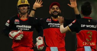 अबू धाबी । आईपीएल 20 – 20 के एक मैच में रॉयल चैलेंजर्स बेंगलुरु के खिलाफ पहले बल्लेबाजी करते हुए