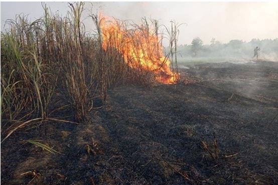 6 एकड़ गन्ने की फसल को किया आग के हवाले