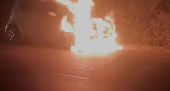 हाईवे पर चलती कार बनी आग का गोला