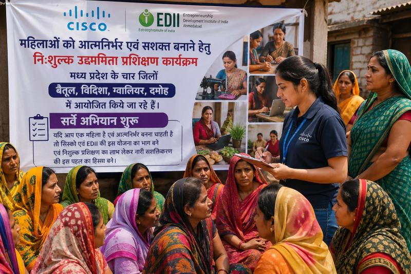 ग्वालियर| महिलाओं को आर्थिक रूप से आत्मनिर्भर एवं सशक्त बनाने के उद्देश्य से बहुप्रतिष्ठित कंपनी सिस्को (CISCO) एवं भारतीय उद्यमिता विकास संस्थान (EDII), अहमदाबाद के संयुक्त तत्वावधान में मध्यप्रदेश के चार जिलों— बैतूल, विदिशा, ग्वालियर एवं दमोह —में रूरबन वूमनप्रेन्योरशिप (RURBAN Womenpreneurship) परियोजना के अंतर्गत विभिन्न उद्यमिता विकास कार्यक्रम आयोजित किए जाने हैं। इस महत्वाकांक्षी परियोजना के तहत महिलाओं को स्वरोजगार, उद्यम स्थापना, डिजिटल साक्षरता एवं समूह आधारित उद्यम विकास के लिए निःशुल्क प्रशिक्षण प्रदान किया जाएगा।