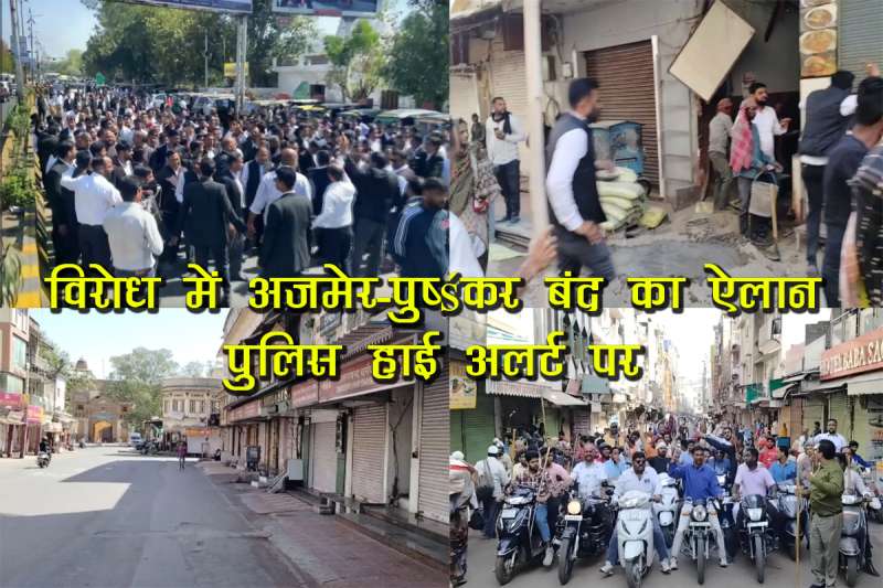 बता दें कि अजमेर की सड़कों पर उतरे सैकड़ों वकीलों ने दुकानदारों को बंद में सहयोग करने या परिणाम भुगतने की चेतावनी दी है। वकीलों ने ऐलान किया है कि सभी दुकानदार आज अपनी दुकानें बंद रखें वरना अगर कोई घटना होती है, तो उसकी जिम्मेदारी उनकी नहीं होगी। बता दें कि पुष्कर में वकील की हत्या के विरोध में शुक्रवार को भी वकीलों ने अजमेर में प्रदर्शन किया था और कोर्ट में हंगामा किया था।गुस्साए वकीलों ने अजमेर कोर्ट परिसर से लोगों और पुलिसकर्मियों को जबरन बाहर निकाल दिया था। उन्होंने कोर्ट परिसर में दुकानें भी बंद कर दीं।