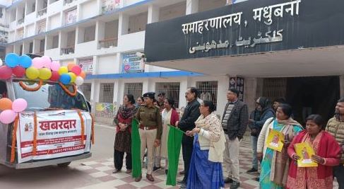 मधुबनी। बाल विवाह मुक्त भारत अभियान के तहत मधुबनी समाहरणालय परिसर से उप-निदेशक सह जिला जनसंपर्क पदाधिकारी, परिमल कुमार, पुलिस उपाधीक्षक, मुख्यालय, रश्मि, सहायक निदेशक, सामाजिक सुरक्षा, नितेश पाठक, सी.डबल्यू. सी. अध्यक्ष, रविन्द्र कुमार, वरीय उप समाहर्ता, सिम्पा ठाकुर के द्वारा संयुक्त रूप से जागरूकता वाहन को हरी झंडी दिखाकर  रवाना किया गया। इस अवसर पर सचिव, सर्वो प्रयास संस्थान, निर्मला कुमारी, केश वर्कर, वीणा चौधरी, हरि कुमार सन्नी सहित अन्य उपस्थित थे। बाल विवाह मुक्त भारत अभियान के तहत चाइल्ड हेल्पलाइन एवं सर्वो प्रयास संस्थान के द्वारा जागरुकता वाहन के माध्यम से लोगो को बाल विवाह के प्रति खबरदार करने के उद्देश्य से बताया जा रहा है कि बाल विवाह एक अपराध है। बाल विवाह कराने और करवाने वाले को 2 साल तक की सजा और 1 लाख रुपये तक का जुर्माना हो सकता है। 18 वर्ष से कम आयु की लड़की और 21 वर्ष से कम आयु के लड़के का विवाह बाल विवाह है। ऐसे विवाह को संपन्न कराना, करवाना या उसमें भाग लेना दंडनीय अपराध है। आइए हम सब मिलकर बाल विवाह मुक्त भारत का निर्माण करें। इस अवसर पर सभी अधिकारियों द्वारा बाल विवाह के उन्मूलन के प्रति अपने दृढ़ संकल्प को व्यक्त करते हुए हस्ताक्षर अभियान में भी भाग लिया गया। बाल विवाह करवाने वाले दोषी माता-पिता तथा 3 रिश्तेदारों को 2 साल तक की सजा और 1 लाख रुपये तक का जुर्माना या दोनों हो सकता है। बाल विवाह करवाने वाले पंडित, मौलवी एवं पादरी को भी सज़ा हो सकती है। बाल विवाह के लिए अपनी सेवा देने वाला नाई, हलवाई, बैंड एवं टेंट वाले अथवा जो भी वहाँ शामिल होंगे उन्हें 2 साल तक की सजा और 1 लाख रुपये तक का जुर्माना या दोनों हो सकते हैं। साथ ही बाल विवाह में शामिल होने वाले व्यक्ति को भी 2 साल तक की सजा और 1 लाख तक का जुर्माना या दोनों हो सकता है।