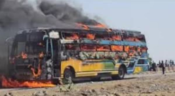 प्रत्यक्षदर्शियों के अनुसार, चलती बस से पहले धुआं निकला और देखते ही देखते पूरी बस आग की लपटों में घिर गई।