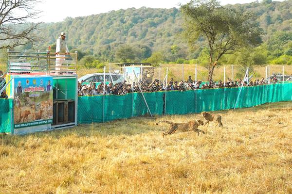 मुख्यमंत्री डॉ. यादव ने कहा कि मध्यप्रदेश, टाइगर, लैपर्ड और चीता स्टेट है। हमारे जंगल बहुत से वन्यजीवों के आश्रय स्थल हैं। ऐसे में विश्व में पहली बार चीतों का पुनर्स्थापन मध्यप्रदेश में हुआ, इसके लिए वन विभाग के मंत्री और अधिकारी बधाई के पात्र हैं। श्योपुर, कूनो में चीतों के पुनर्स्थापन से पर्यटन में 5 गुना वृद्धि हो चुकी है। चीतों का परिवार जिस तेज गति से बढ़ रहा है, उसी हिसाब से भविष्य में कूनो नेशनल पार्क से विस्थापित लोगों को रोजगार के अवसर भी मिल रहे हैं।