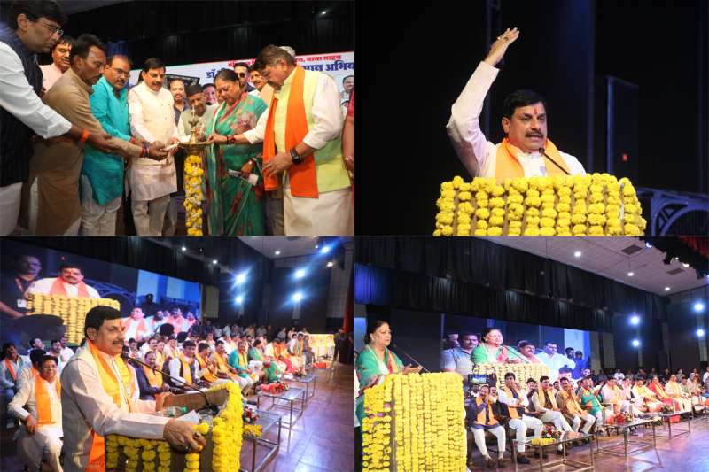 मुख्यमंत्री डॉ. मोहन यादव, राष्ट्रीय उपाध्यक्ष श्रीमती वसुंधरा राजे एवं प्रदेश सरकार के मंत्री श्री कैलाश विजयवर्गीय ने आज इंदौर के रवींद्र नाट्य गृह में डॉ. अंबेडकर सम्मान अभियान के अंतर्गत आयोजित संगोष्ठी को किया संबोधित