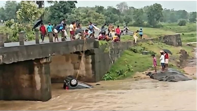 जामताड़ाः झारखंड में लगातार हो रही बारिश से जामताड़ा को भारी नुकसान हो रहा है। मंगलवार रात को जामताड़ा जिला मुख्यालय से 2 किलोमीटर की दूरी पर स्थित जामताड़ा देवघर मार्ग पर दक्षिण बहाल जोरिया पर बना डायवर्सन तेज पानी के दबाव में बह गया। इस घटना में एक कार में सवार पांच लोग फंस गए। काफी मशक्कत के बाद पुलिस और स्थानीय लोगों की मदद से कार के साथ चार लोगों का रेस्क्यू कर लिया गया। वहीं एक व्यक्ति लापता है, जिसकी खोजबीन के लिए प्रयास किया जा रहा है। लापता युवक जामताड़ा परिवहन विभाग का आउटसोर्सिंग कर्मी वेद प्रकाश बताया जा रहा है। हालांकि प्रशासन की ओर से घटना के बाद से ही लगातार रेस्क्यू और सर्च अभियान चलाया जा रहा है, लेकिन अभी तक उसका कुछ कुछ पता नहीं चल पाया है।