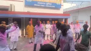 पुलिस अधिकारियों ने बताया कि होलिका दहन से लेकर होली खेलने तक शहर के सुरक्षा व्‍यवस्‍था के लिए पुलिस ने लगातार 72 घंटे ड्यूटी की थी. परंपरा के अनुसार पुलिसकर्मी होली के अगले दिन सामूहिक रूप से होली मिलन समारोह मनाते हैं।