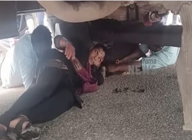 भीषण एक्सीडेंट: बाइक समेत बस के नीचे आई महिला, लोगों ने खींचकर निकाला