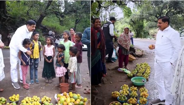 पचमढ़ी: हिल स्टेशन पचमढ़ी से पिपरिया लौट रहे मुख्यमंत्री डॉ. मोहन यादव का मन ग्राम बारीआम में सड़क किनारे रखे देसी आमों पर आ गया. उन्होंने देसी आम का स्वाद लेने के लिए अपना काफिला बीच सड़क पर रुकवा दिया. इसके बाद मुख्यमंत्री ने देसी आमों की खरीदारी की. वहीं सड़क किनारे आम बेच रही महिलाओं से आम की बिक्री से होने वाली आमदनी और बच्चों की पढ़ाई को लेकर चर्चा की.