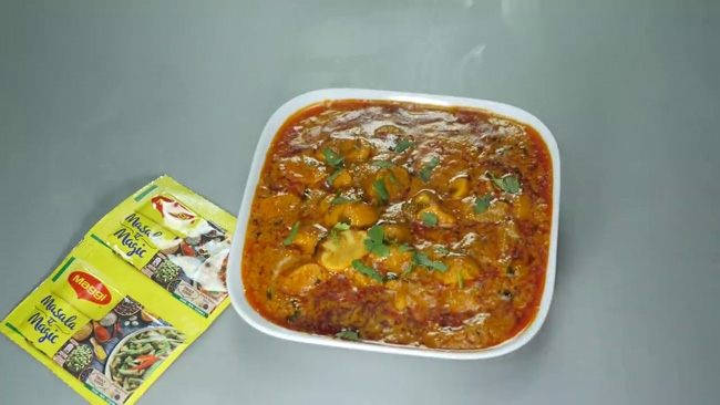 समय पूरा होने पर इसमें मैगी मसाला-ए-मैजिक का एक सैशे डालिए. इसे अच्छे से मिला कर सब्जी को ढक कर 2 मिनट पकाएं. समय पूरा होने पर मशरूम मसाला करी बनकर तैयार हो जाएगी. इसे रोटी, परांठे, नान या चावल के साथ परोसिए और इसके स्वाद का आनंद लीजिए.