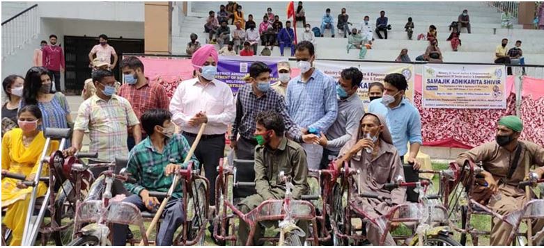 नैसर्गिक विकलांग सेवा संघ ने दिव्यांगों को किया नोटबुक व छतरी का वितरण