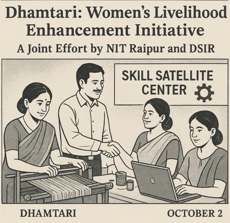 धमतरी :  महिलाओं के कौशल विकास और आजीविका संवर्धन के लिए धमतरी में महिलाओं की आजीविका संवर्धन के लिए एन.आई.टी. रायपुर और डी.एस.आई.आर. की साझी पहल की है । डी.एस.आई.आर. का छत्तीसगढ़ ही नहीं बल्कि  भारत  में  पहला प्रोजेक्ट है ।