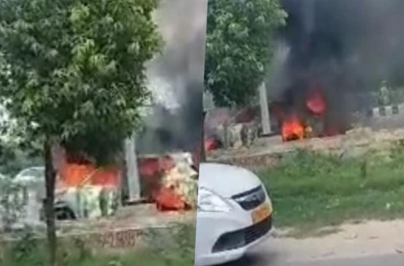 कार से शुरू हुई आग