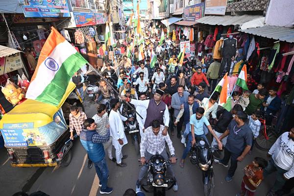 भोपाल : गणतंत्र दिवस की पूर्व संध्या पर नरेला विधानसभा क्षेत्र में सहकारिता, खेल एवं युवा कल्याण मंत्री विश्वास कैलाश सारंग के नेतृत्व में सेमरा मंडी चौराहे से विशाल तिरंगा यात्रा निकाली गई। इस भव्य आयोजन में बड़ी संख्या में बाइक्स पर सवार युवाओं ने हाथों में लहराते हुए तिरंगे के साथ देशभक्ति का संदेश दिया।