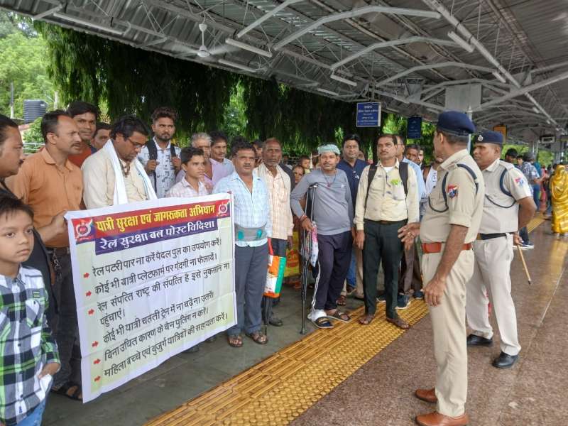 स्टेशन पर रेल सुरक्षा बल द्वारा ऑपरेशन जन जागरण के तहत यात्रियों को किया गया जागरूक