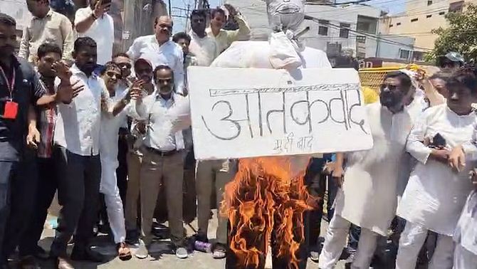 पहलगाम आतंकी हमले के विरोध में भोपाल में प्रदर्शन, आतंकवाद का पुतला दहन