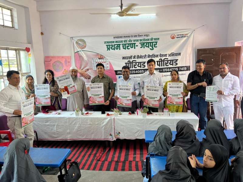जयपुर। राजस्थान मदरसा बोर्ड व जगन फाउंडेशन की पहल पर राजस्थान मदरसा बोर्ड से पंजीकृत मदरसों में सेनेटरी नैपकिन चेतना अभियान "पीरियड का पीरियड" के प्रथम चरण की शुरुआत सोमवार को जयपुर के हटवाड़ा स्थित मदरसा ज़ीनतुल उलूम से हुई। अभियान का शुभारंभ अतिरिक्त निदेशक, अल्पसंख्यक मामलात विभाग श्री अबू सूफियान चौहान के मुख्य आतिथेय में हुआ। इस दौरान सचिव, राजस्थान मदरसा बोर्ड श्री चेतन चौहान, जिला अल्पसंख्यक कल्याण अधिकारी श्री अभिषेक सिद्धा, इमाम श्री मोहम्मद मुफीद, जगन फाउंडेशन की निदेशक सुश्री मालविका मुद्गल सहित मदरसा बोर्ड के अधिकारीगण/कर्मचारीगण, मदरसा ज़ीनतुल उलूम की छात्राएं और शिक्षकगण व जगन फाउंडेशन के प्रतिनिधि उपस्थित रहे।
