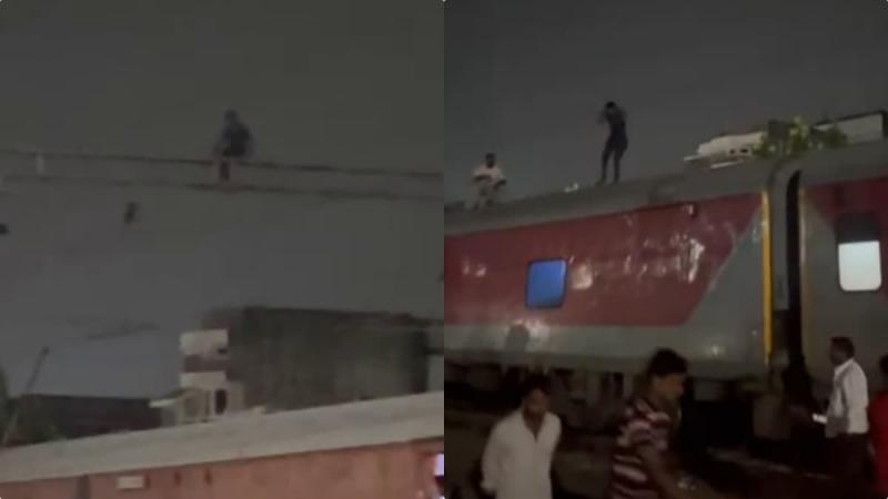 अचानक ट्रेन की छत पर चढ़ा युवक