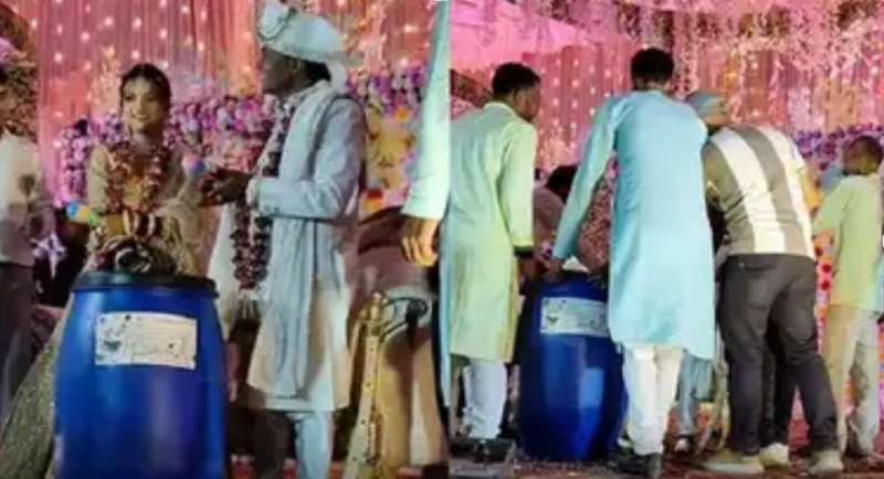 हमीरपुर शादी में अजीबो-गरीब गिफ्ट, दूल्हा-दुल्हन को दोस्तों ने दिया ‘नीला ड्रम’