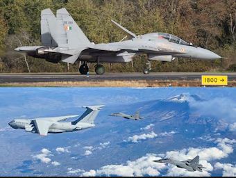 गरुड़ 25 में फ्रांस के आसमान में उड़ रहे सुखोई-30एमकेआई और राफेल विमान