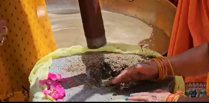इसमें सबसे पहले पूजा करके तिल को सूप पर लेकर फटका जाता है, ताकि उसमें से सारी गंदगी निकल जाए. इसके बाद महारानी सबसे पहले ओखली में तिल डालकर उसे पिरोना शुरू करती हैं. यहां अन्य महिलाएं सिल-बट्टे की मदद से तिल की कुटाई करती हैं.