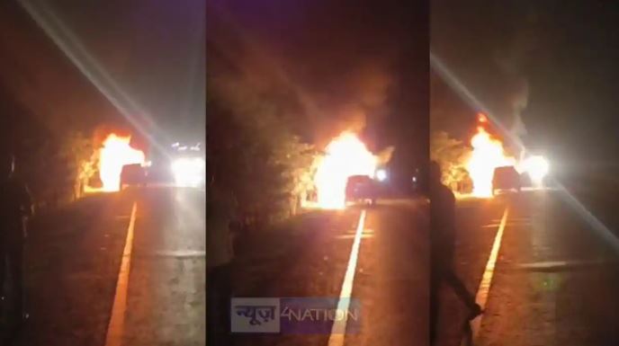 बीच सड़क धू-धूकर जली वैन, मचा हड़कंप