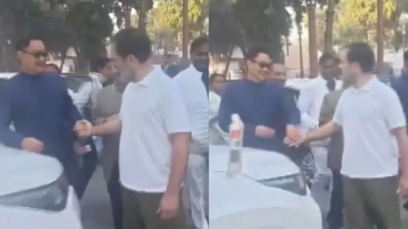 राहुल गांधी से मिले केंद्रीय मंत्री रिजिजू, मजाकिया अंदाज में कहा……….थोड़ा डर गया मैं…