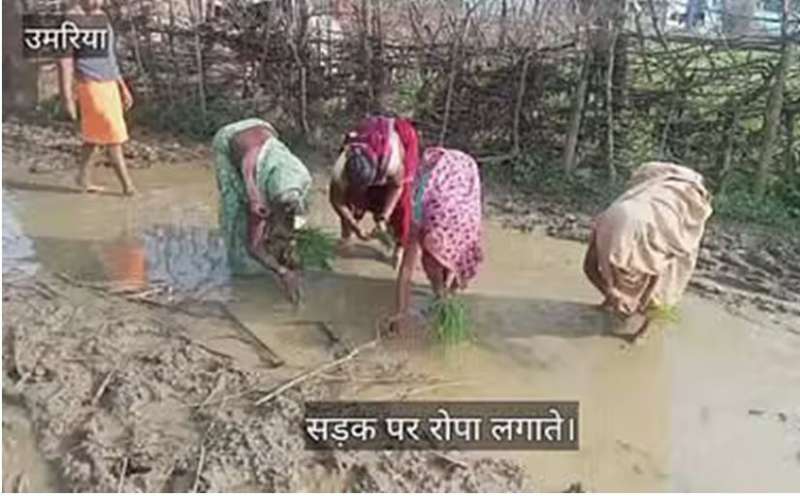 सड़क नहीं बनी तो खेत बना डाली सड़क! बड़खेड़ा में महिलाओं ने रोप दी धान की फसल